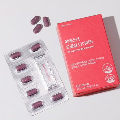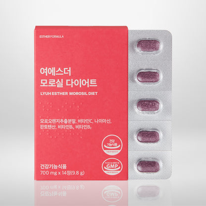 1) 주성분인 개별인정기능성 성분 "모로오렌지추출물분말(모로실®)(등록번호 2021-7)" 400mg 함유 2) 25년의 전통을 가진 이탈리아 식물 추출물 회사인 BIONAP의 프리미엄 모로 오렌지 추출 분말 성분을 사용했습니다. 3) BIONAP의 Desugaring 방법 채택 4) 5가지 비타민을 주성분으로 6가지 기능성을 맞춤으로 배합하였습니다. 5) Lyuh Esther Morosil Diet의 재료 6) 하루 1정씩 복용하세요. 다이어트가 간편하도록 PTP 포장으로 편리하게 포장되었습니다. 7) 닥터 리우에스터의 재료 배합 노하우 |